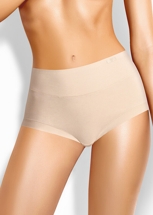 Трусы-макси женские из эластичного полотна с хлопком и модалом в составе. Двойная деталь переда. Обработка талии по спинке - окантовкой, по ноге - притачная бейка из основного полотна. Фирменный жаккардовый логотип.