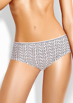 Трусы-макси женские из эластичного вискозного полотна. Обработка по талии - жаккардовая резинка, по ноге - открытый срез.