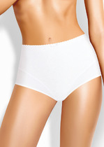 Трусы-макси утяжка женские из плотного эластичного хлопкового полотна. Обработка краев - ажурной резинкой с фестоном. По переду декоративные резы, вставки из кружева и бант.