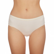 Трусы стринги комфортной посадки. В отрезном бочке -кружево, переходящее на спинку. По поясу и ножкам-обработка резинкой с фестоном. На детали переда расположен небольшой атласный бант.