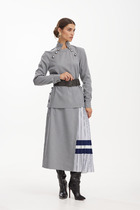 Юбка миди из текстильного полотна штапель. По талии притачной пояс со шлевками. По переду боковой разрез, справа накладной карман с клапаном. По спинке средний шов с застежкой на молнию, вытачки.