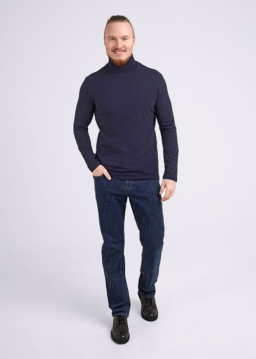 Базовый мужской лонгслив с длинным рукавом на воротнике стойке с загибом. Выполнен из дышащего хлопкового полотна. Лонгслив можно скомбинировать с брюками или джинсами. Отличное решение для похода на работу или встречи с друзьями.