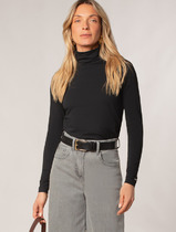 Водолазка на кулирной глади с лайкрой. Модель с длинным втачым рукавом, обработанным вподгибку. Горловина обработана воротником-стойкой, по низу - подгибка.