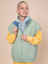 Жилет из джерси полуприлегающего силуэта, имеет английский воротник. Аккуратная баска гармонирует с вырезом горловины. Модель подходит для девочек с разными типами фигур. По линии втачивания баски, дополнена поясом на кольцах и этой же ткани.