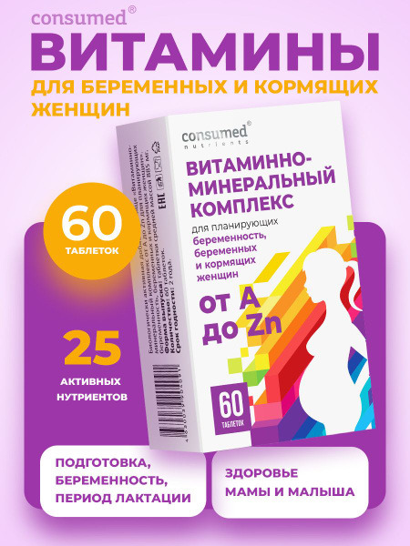 01.02.2027#Розничная цена от 760. «Витаминно-минеральный комплекс от А до Zn для планирующих беременность, беременных и кормящих женщин» содержит витамины, минералы и витаминоподобные вещества, которые помогут устранить их недостаток в рационе. Обеспеченность женского организма важнейшими микронутриентами во время планирования беременности, а также в периоды беременности и кормления — важное слагаемое здоровья ребенка и мамы.