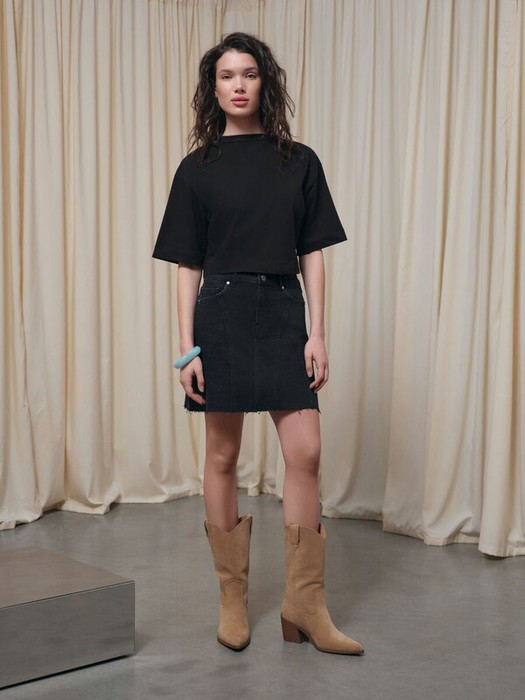 27.03 Vilatte Джинсовая юбка из плотной эластичной джинсы 13OZ. D56.124 черный