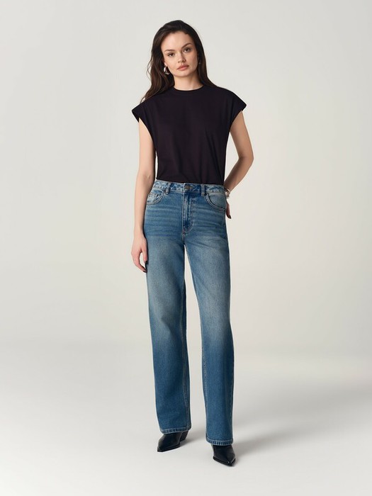 Джинсы straight из плотного денима классического синего цвета станут основой аутентичного образа и подчеркнут вашу индивидуальность. Яркий акцент модели – регулируемые отвороты с контрастным краем: их можно подвернуть, чтобы добавить в образ ретро-эстетики. Джинсы ultra-long –  отличный вариант для трендовых стилизаций с брюками в пол.