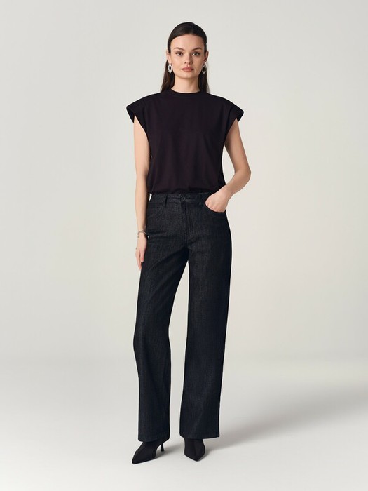 Чёрные брюки straight выполнены из ткани саржевого плетения с добавлением люрекса, который придаёт модели деликатное мерцание. Эта деталь наделяет брюки особым шармом, подчёркивая ваш индивидуальный стиль и выразительность образов.