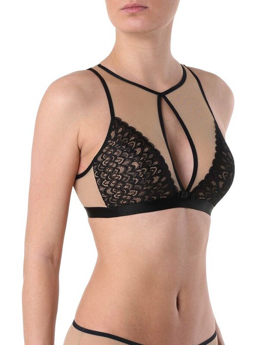 Бралетт серии Venus выполнен из изящного кружева с необычным рисунком. Легкость узора поддерживается воздушной сеткой с деликатным блеском. Благодаря телесному оттенку, сетка словно исчезает на теле, подчеркивая кружевные детали и плавные линии силуэта. Бралетт можно носить не только как элемент бельевого комплекта, но и как соблазнительный акцент под пиджак или рубашку в стиле oversize. Преимущества модели: