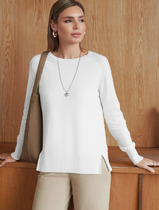 Vilatte Джемпер тонкой вязки из хлопка с кашемиром D39.350 натуральный белый