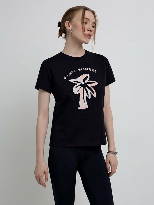 Базовая футболка с рисунком «Bonnes vacances» из мягкого хлопка сочетает в себе минимализм и оригинальные тенденции уличной моды.