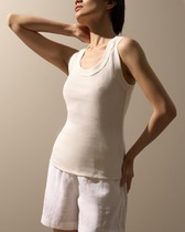 Майка женская бельевая из однотонного трикотажного полотна с глубоким вырезом горловины по переду. Горловина и пройма окантованы бейкой.