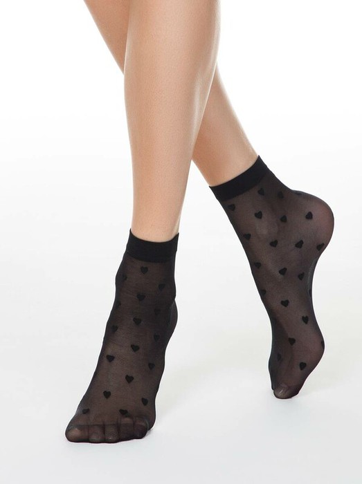 CONTE ELEGANT Полиамидные CONTE FANTASY Тонкие носки с рисунком "сердечки&q