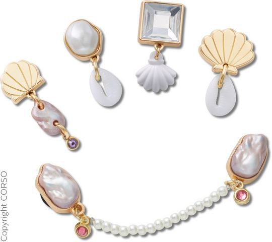 Симпатичный набор разных цветов и дизайнов, крепится на обувь Crocs, изготовлен из полирезина и цинкового сплава, украшен декоративными бусинами, ракушками и цепочками с драгоценными камнями. Лучше всего заказать новые туфли Crocs одновременно! Размер N.