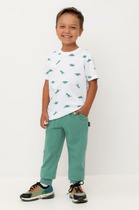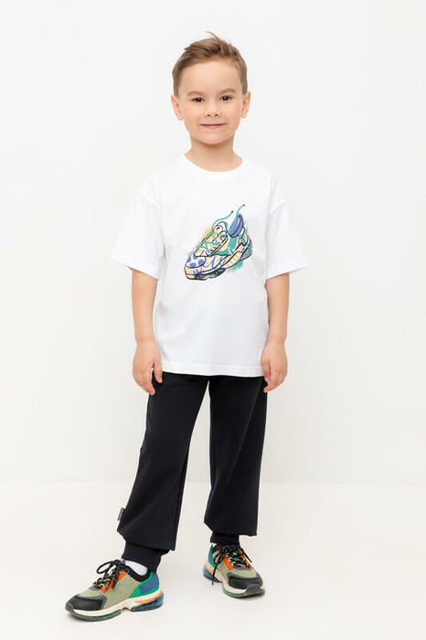 Свободные брюки для мальчика из петельчатого футера. Эластичный пояс на резинке регулируется по ширине с помощью шнурка, внизу эластичные манжеты.