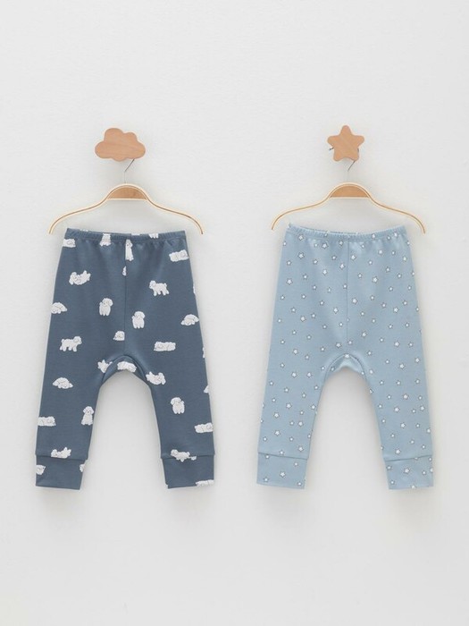 Брюки для новорождённых из мягкого эластичного трикотажа интерлок, произведённого из натурального хлопка. В упаковке 2 штуки. Пояс на резинке. Оригинальная набивка выполнена из стойких гипоаллергенных текстильных красителей. Все трикотажные полотна производятся в соответствии с нормами швейцарского сертификата ЭкоТекс.