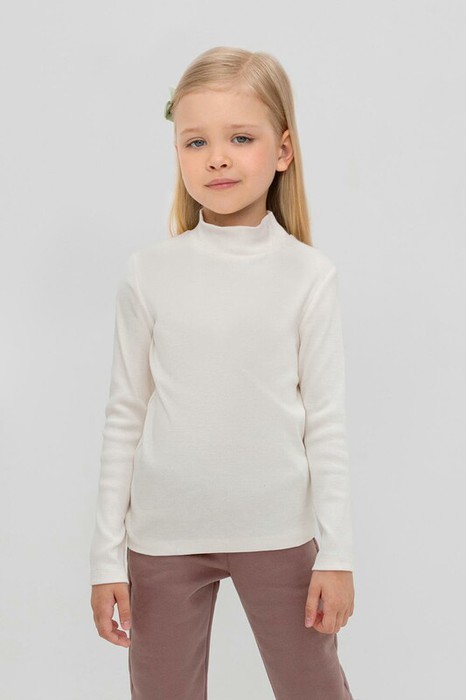 Базовая водолазка для девочки из кашкорсе, произведенного из эластичного натурального хлопка. Изделие имеет воротник с отворотом и длинные втачные рукава. Водолазка сохраняет цвет и форму после многократных стирок.
