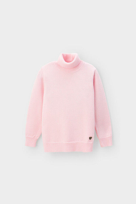 Вязаный джемпер для девочки из мягкой полушерстяной пряжи. Высокий воротник с отворотом хорошо защищает от холода. Изделие сохраняет форму и стойкий цвет после многочисленных стирок.