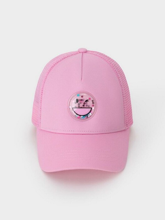 Кепка для девочки из текстиля и сетки. Спереди украшена оригинальной нашивкой с блёстками. Регулируется по ширине головы и фиксируется на затылке с помощью пластиковой застёжки.