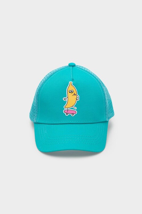 Кепка для мальчика из текстиля и сетки. Спереди оригинальный принт. Регулируется по ширине и фиксируется на затылке с помощью пластиковой застежки.