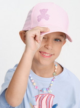 Кепка для девочки из натурального хлопка. Спереди украшена пайетками. Регулируется по ширине головы и фиксируется на затылке с помощью металлического зажима.