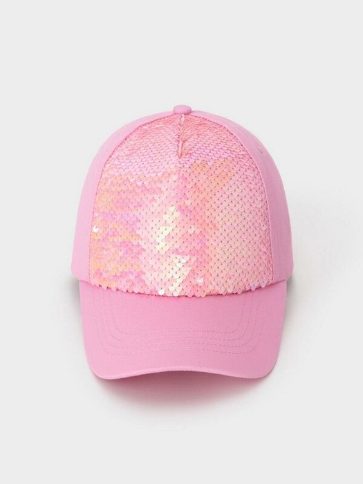 Кепка для девочки из натурального хлопка. Спереди украшена пайетками. Регулируется по ширине головы и фиксируется на затылке с помощью металлического зажима.