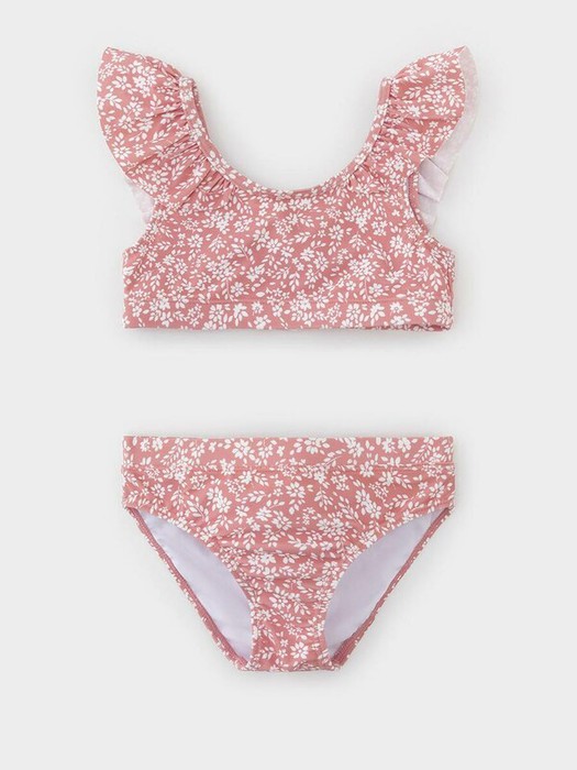 Раздельный купальник для девочки. Топ на эластичных лямках и плавки на резинке. Украшен воздушными оборками. Оригинальная набивка выполнена из стойких гипоаллергенных красителей.