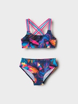 Раздельный купальник для девочки. Топ на регулируемых бретелях и плавки на эластичной резинке. Внутри подклад. Украшен принтом с логотипом.