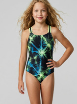 Слитный купальник на лямках для девочки. Украшен оборками. Внутри подклад. Оригинальная набивка выполнена из стойких гипоаллергенных красителей.