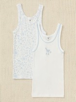 Трикотажные майки в комплекте 2 шт на тонких бретелях из однотонного супрема с эластаном, горловина спинки и проймы обработаны кантом, по горловине полочки декоративная эластичная тесьма и атласный бантик. Сохраняют цвет и форму после многократных стирок. Все трикотажные полотна производятся в соответсвии с нормами Швейцарского сертификата ЭкоТекс.