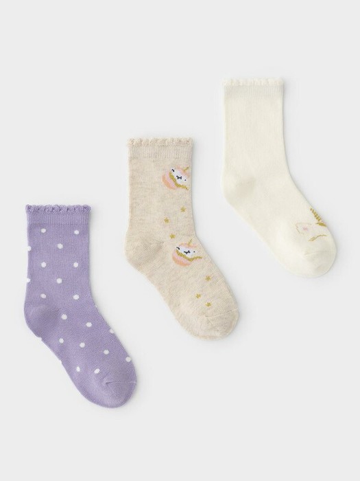Носки с формованной пяткой и эластичной резинкой по краю. Украшены рисунком и объёмными элементами. В комплекте 3 пары. Изделия сохраняют форму и стойкий цвет после многочисленных стирок.