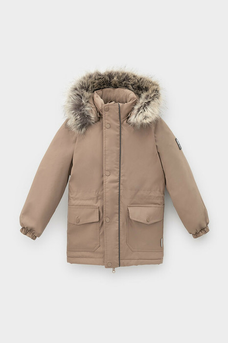 • Съемный капюшон на кнопках с отстегивающимся искусственным мехом и эластичным шнурком