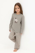 Трикотажная пижама из натурального хлопка. Джемпер с длинными втачными рукавами и брюки с эластичной резинкой в поясе. Мягкие манжеты на рукавах и по низу брюк. Оригинальная набивка выполнена из стойких текстильных гипоаллергенных красителей. Изделие сохраняет цвет и форму после многократных стирок. Все трикотажные полотна производятся в соответствии с нормами швейцарского сертификата ЭкоТекс.