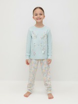 Трикотажная пижама из натурального хлопка. Джемпер с длинными рукавами с эластичными манжетами. У брюк эластичный пояс на резинке. Оригинальная набивка и принт выполнены из стойких, гипоаллергенных текстильных красителей. Пижама сохраняет цвет и форму после многократных стирок. Все трикотажные полотна производятся в соответствии с нормами Швейцарского сертификата ЭкоТекс.