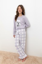 Трикотажная пижама из натурального хлопка. Джемпер с длинными втачными рукавами и брюки с эластичной резинкой в поясе. Мягкие манжеты на рукавах и по низу брюк. Оригинальная набивка и принт выполнены из стойких текстильных гипоаллергенных красителей. Изделие сохраняет цвет и форму после многократных стирок. Все трикотажные полотна производятся в соответсвии с нормами швейцарского сертификата ЭкоТекс.
