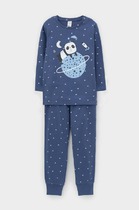 Трикотажная пижама в рубчик из натурального хлопка. Джемпер с длинными втачными рукавами и лосины с эластичной резинкой в поясе. Оригинальная набивка выполнена из стойких текстильных гипоаллергенных красителей. Изделие сохраняет цвет и форму после многократных стирок. Все трикотажные полотна производятся в соответсвии с нормами швейцарского сертификата ЭкоТекс.
