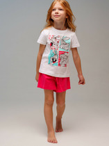 Трикотажная пижама в рубчик из натурального хлопка. Футболка с короткими втачными рукавами и шорты с эластичной резинкой в поясе. Оригинальная набивка выполнена из стойких текстильных гипоаллергенных красителей. Изделие сохраняет цвет и форму после многократных стирок. Все трикотажные полотна производятся в соответствии с нормами швейцарского сертификата ЭкоТекс.