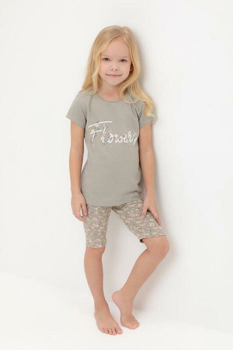 Crockid пижама для дев К 1647/пыльно-оливковый,полевые цветы
