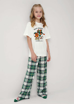 Пижама для мальчика из натурального хлопка. Джемпер с длинными втачными рукавами и прямые брюки с эластичной резинкой в поясе. Оригинальная набивка и принт выполнены из стойких текстильных гипоаллергенных красителей. Изделие сохраняет цвет и форму после многократных стирок. Все трикотажные полотна производятся в соответствии с нормами швейцарского сертификата ЭкоТекс.