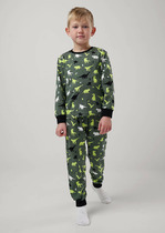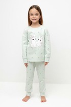 Трикотажная пижама из натурального хлопка. Джемпер с длинными втачными рукавами и прямые брюки с эластичной резинкой в поясе. Оригинальные набивка и принт выполнены из стойких гипоаллергенных текстильных гипоаллергенных красителей. Изделие сохраняет цвет и форму после многократных стирок. Все трикотажные полотна производятся в соответсвии с нормами швейцарского сертификата ЭкоТекс.