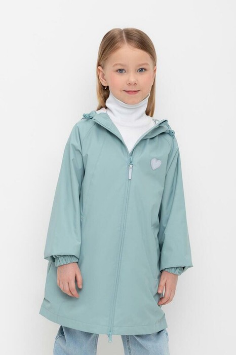 Плащ без утеплителя. Рекомендованный температурный режим: от +15° и выше без поддевы и от +8° и выше с поддевой. Верхняя мембранная ткань 1000/1000 с тефлоновым покрытием отталкивает воду и грязь и обладает «дышащими» свойствами. Подкладка выполнена из 65% полиэстера и 35% хлопка. Застёгивается на молнию с двумя замками, предусмотрена защита подбородка. Дополнительная ветрозащитная планка внутри. Удлинённая спинка скруглена. Капюшон не снимается, эластичный шнур утягивается и обеспечивает плотное прилегание к голове. Эластичные манжеты на резинке. Боковые карманы на молнии. Светоотражающие элементы служат для безопасности в тёмное время суток.