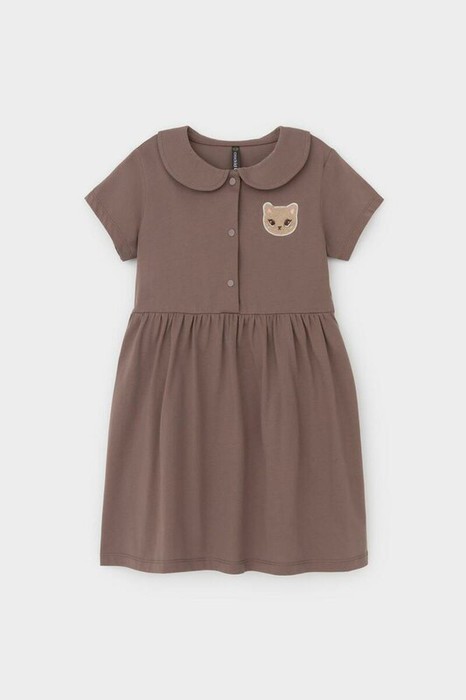Лёгкое трикотажное платье с воротничком и короткими спущенными рукавами из высококачественного хлопка. Изделие сохраняет цвет и форму после многократных стирок. Застёгивается спереди на кнопки.