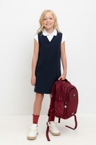Платье для девочки с короткими спущенными рукавами из гладкого хлопкового трикотажа. Для удобства одевания застёгивается спереди на планку с кнопками. Платье сохраняет форму и стойкий цвет после многочисленных стирок и идеально подходит на каждый день. Все трикотажные полотна производятся в соответствии с нормами швейцарского сертификата ЭкоТекс.