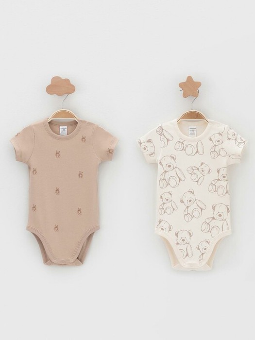 Боди для новорождённых из мягкого эластичного трикотажа, произведённого из натурального хлопка. В упаковке 2 штуки. Застёгиваются на кнопки на плече и по низу изделий. Оригинальная набивка и принт выполнены из стойких гипоаллергенных текстильных красителей. Все трикотажные полотна производятся в соответствии с нормами швейцарского сертификата ЭкоТекс.