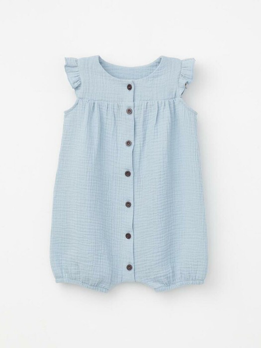 Легкий песочник для девочки из мягкого хлопокового муслина с застежкой на пуговицы. Изделие сохраняет цвет, форму и фактуру жатости после многократных стирок.