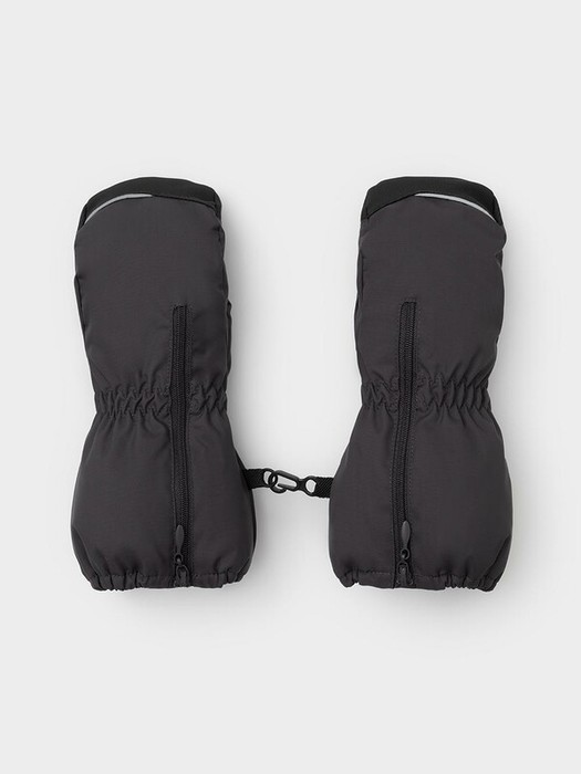 Детские утеплённые рукавицы из однотонной мембранной ткани со вставками из искусственной кожи. Удлинённые манжеты на молнии. Мягкий подклад из флиса. Пластиковый карабин для скрепления рукавиц между собой. Светоотражающие элементы.