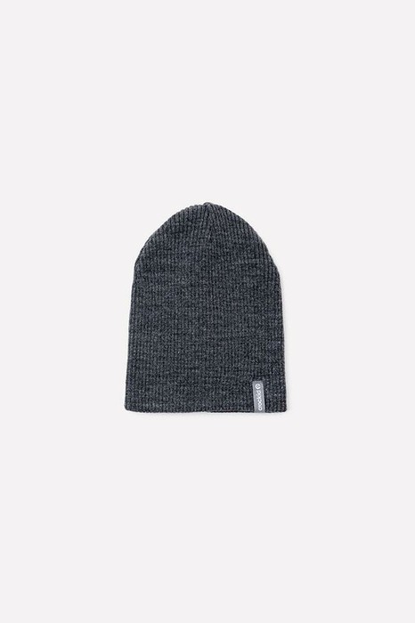 Шапка двухслойная из однотонной полушерстяной пряжи. Эластичная вязка. Скругленная макушка с вытачками. По нижнему краю жаккардовая нашивка.
