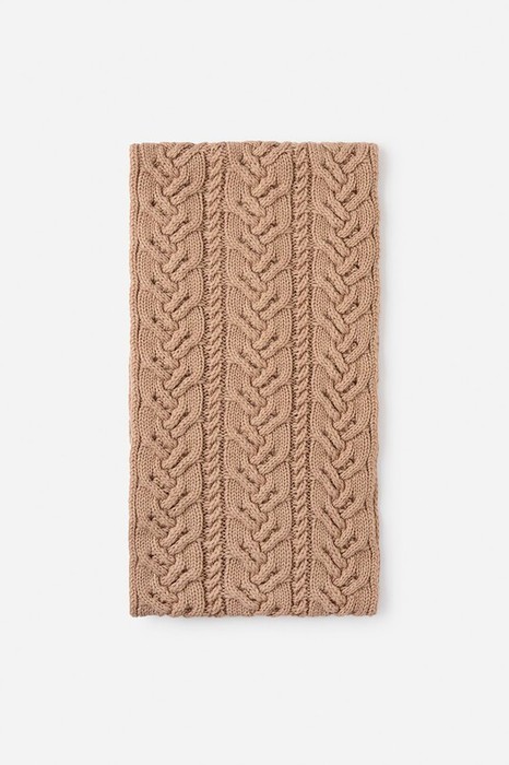 Стильный снуд из полушерсти с вязаным узором из кос. Защитит горло и согреет ребёнка во время прогулки.