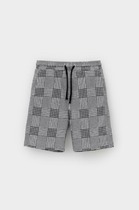 Трикотажные шорты для мальчика из петельчатого футера. Эластичный пояс на резинке регулируется по ширине с помощью шнурка, по бокам два удобных кармана.