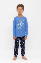 Трикотажный пижамный комплект из натурального хлопка. У джемпера длинные втачные рукава. Брюки с удобным поясом на резинке и атласной лентой . Оригинальная набивка и принт выполнены из стойких, гипоаллергенных текстильных красителей. Все трикотажные полотна производятся в соответствии с нормами Швейцарского сертификата ЭкоТекс.